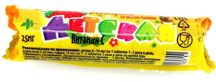 Есть вопросы по товару "Аскорбиновая кислота Малина детская Аскопром 10 таблеток"?